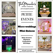 Our venue can host up to 75 guests and is perfect for "petite" events